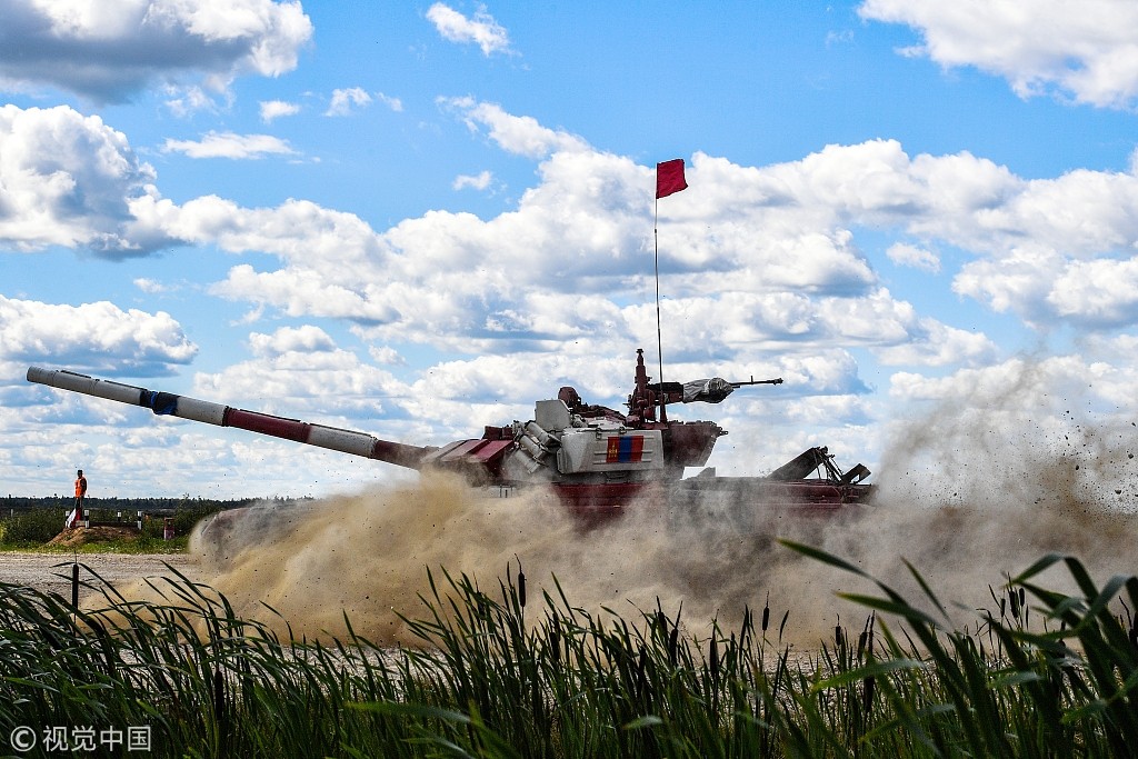 当地时间2018年8月8日,俄罗斯阿拉比诺,2018国际军事比赛坦克两项第二场半决赛举行。