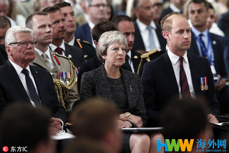 当地时间2018年8月8日,法国亚眠,当地大教堂举行纪念亚眠战役100周年活动,英国首相特蕾莎-梅和威廉王子一同出席。