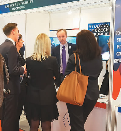 2017中国国际教育展(北京)上,近20所捷克高校及中学组成的捷克展团亮相。图为捷克某大学展台。