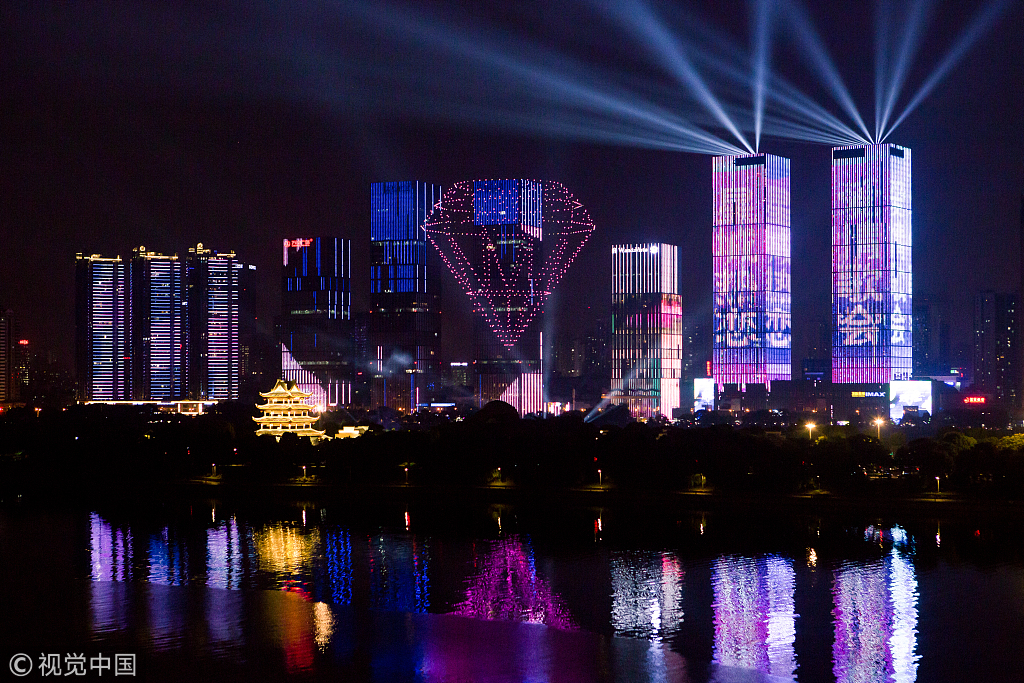 长沙现大型告白现场 777架无人机橘子洲上空“说爱你”