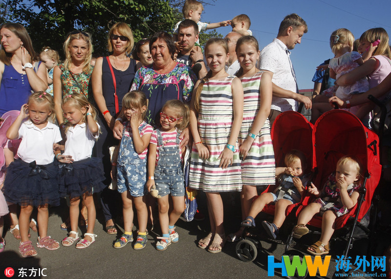 当地时间2018年8月11日,乌克兰基辅,乌克兰超过200对双胞胎和三胞胎同父母参加双胞胎节聚会活动,创乌克兰多胞胎集会人数新纪录。