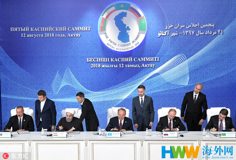 哈萨克斯坦总统纳扎尔巴耶夫、俄罗斯总统普京、阿塞拜疆总统阿利耶夫、土库曼斯坦总统别尔德穆哈梅多夫、伊朗总统鲁哈尼当天在阿克套举行会晤,就里海法律地位、里海国家间合作及重大国际和地区问题交换意见。
