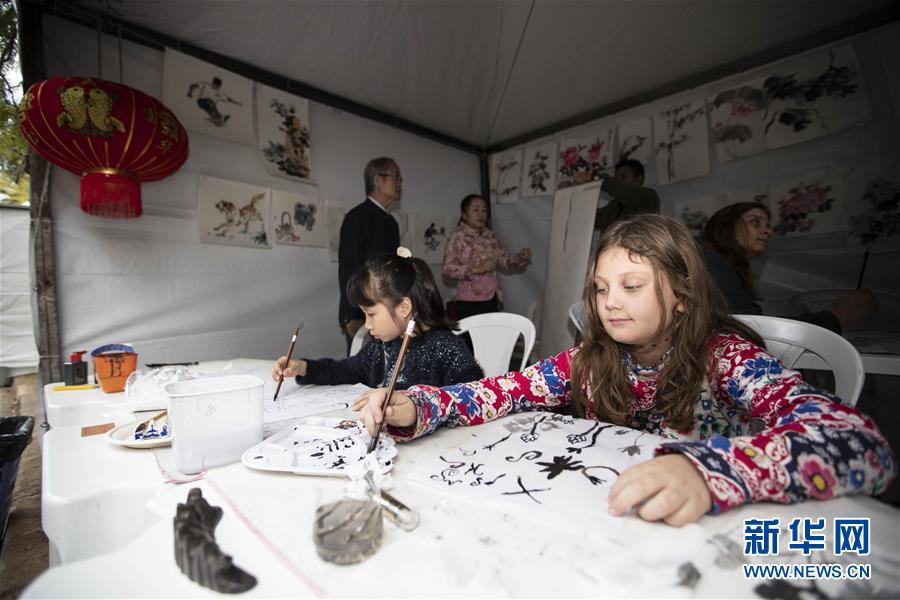 8月12日,在巴西圣保罗市的阿克力马森公园内,两名儿童在活动中体验中国画。当日,巴西侨界在位于巴西圣保罗市中心的阿克力马森公园内举行盛大活动,庆祝首个“中国移民日”的到来。1900年8月15日是巴西官方有据可查的华人首次抵达巴西的日子。今年6月,巴西总统特梅尔签署法令,将每年的8月15日定为“中国移民日”。新华社记者李明 摄