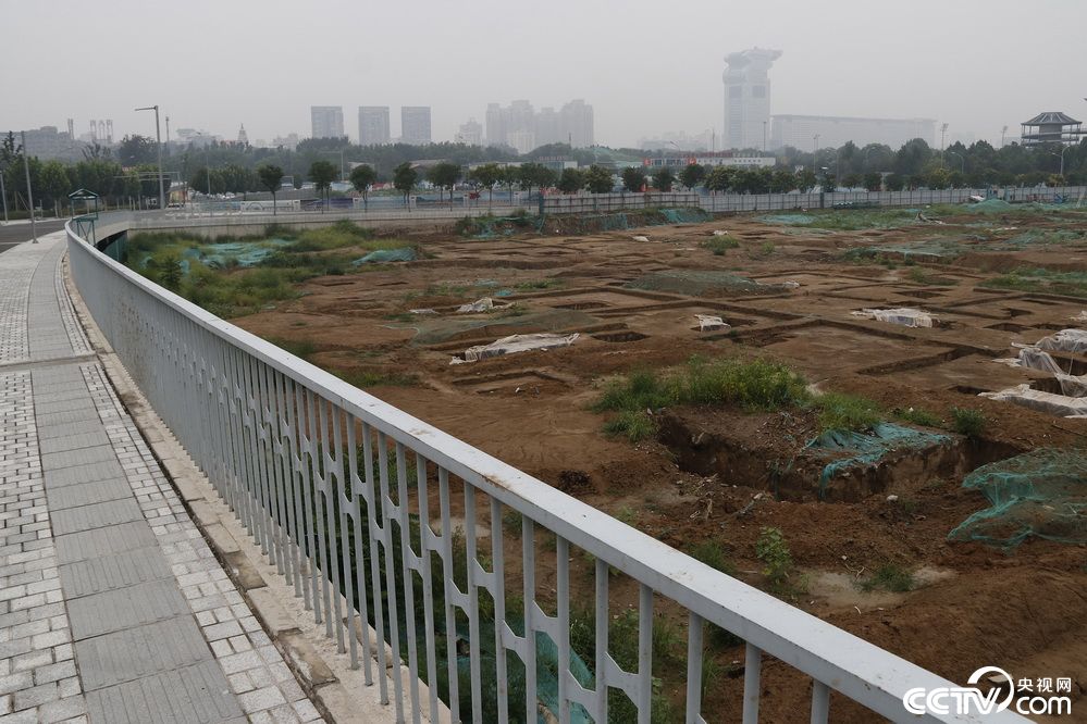 2018年8月11日,北京,奥林匹克中心南侧近日发现两处大型古代墓葬群。其中,东侧的墓葬群有部分墓葬已经挖掘完毕,为了防止有雨水侵袭,有的墓坑上面还盖上了塑料布。 视觉中国