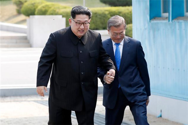 4月27日,在板门店韩方一侧的“和平之家”,金正恩和文在寅举行首次会晤。双方签署《板门店宣言》,宣布将为实现朝鲜半岛无核化和停和机制转换而努力。宣言中明确提及“文在寅将于秋天访问平壤”。