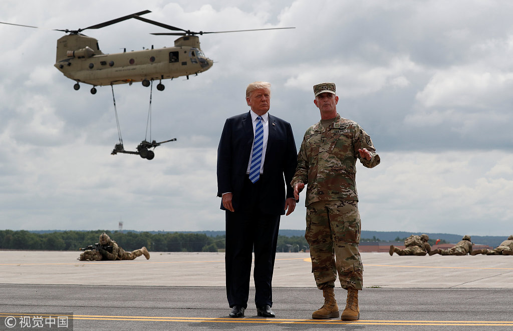 当地时间2018年8月13日,美国纽约,据报道,当天,美国总统特朗普在纽约德拉姆堡军事基地签署了总额达7160亿美元的2019年度国防授权法案,法案正式生效。由此,美军军费将增加2.6%,为9年来最大增幅。