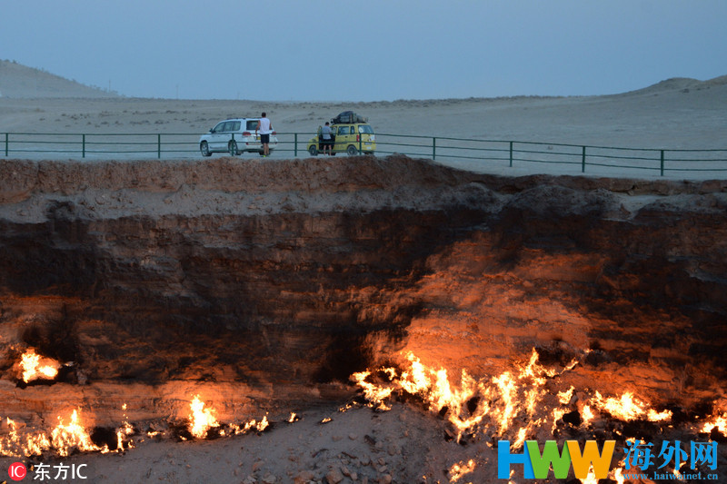 在土库曼斯坦以北的卡拉库姆沙漠腹地,有一个世界著名的景观“地狱之门”,吸引各地游客慕名而来。近日,中国摄影师从土库曼斯坦首都阿什哈巴德出发,历时4小时,经过3次检查,终于到达“地狱之门”实地探访。“地狱之门”其实是上世纪70年代,苏联地质学家钻探时发现地下蕴藏天然气,由于钻探装置下的一片泥土倒塌,留下一个直径约70米,深约30米巨型坑洞。为了防止有毒气体泄露,他们点起了一把火,时至今日,火焰都未曾熄灭,已经燃烧了47年。