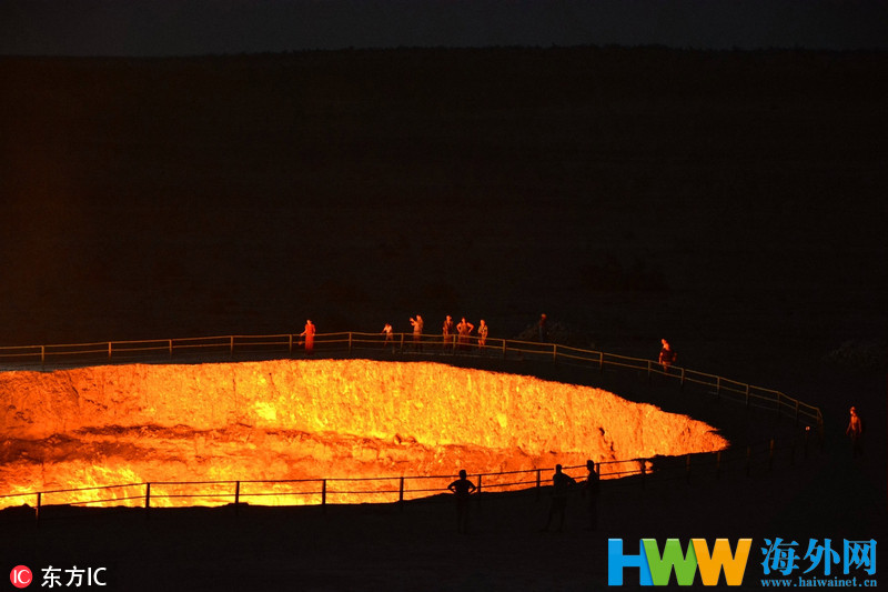 在土库曼斯坦以北的卡拉库姆沙漠腹地,有一个世界著名的景观“地狱之门”,吸引各地游客慕名而来。近日,中国摄影师从土库曼斯坦首都阿什哈巴德出发,历时4小时,经过3次检查,终于到达“地狱之门”实地探访。“地狱之门”其实是上世纪70年代,苏联地质学家钻探时发现地下蕴藏天然气,由于钻探装置下的一片泥土倒塌,留下一个直径约70米,深约30米巨型坑洞。为了防止有毒气体泄露,他们点起了一把火,时至今日,火焰都未曾熄灭,已经燃烧了47年。