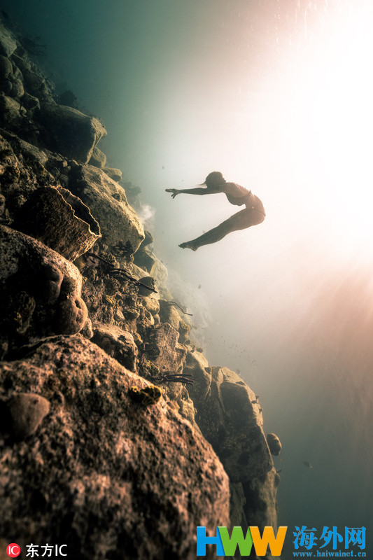 2018年8月14日报道,本月4日,Alex Voyer与朋友在加勒比海深处自由潜水,在一艘沉船遗址区域拍摄了一组令人神往的照片。画面中,两位潜水者戴着呼吸机和脚蹼潜入深海,变换姿势自由如鱼。