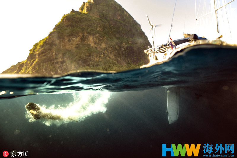 2018年8月14日报道,本月4日,Alex Voyer与朋友在加勒比海深处自由潜水,在一艘沉船遗址区域拍摄了一组令人神往的照片。画面中,两位潜水者戴着呼吸机和脚蹼潜入深海,变换姿势自由如鱼。