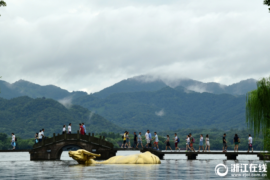 台风“摩羯”来去匆匆。8月13日早晨,风雨过后的西湖西山云雾缭绕。(浙江在线拍友 里尔 摄)