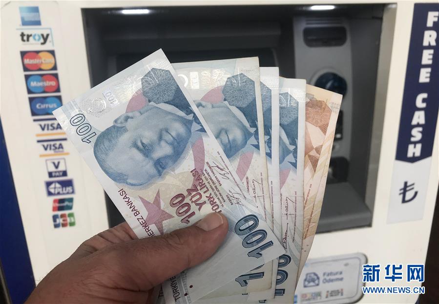 8月14日,在土耳其伊斯坦布尔,人们在一处货币兑换点换钱。连日来土耳其货币里拉汇率暴跌,今年以来跌幅已达45%。土耳其总统埃尔多安13日表示,土耳其经济正在遭受“攻击”,但土耳其有能力抵御这一攻击。新华社发(坚克·巴克兰摄)