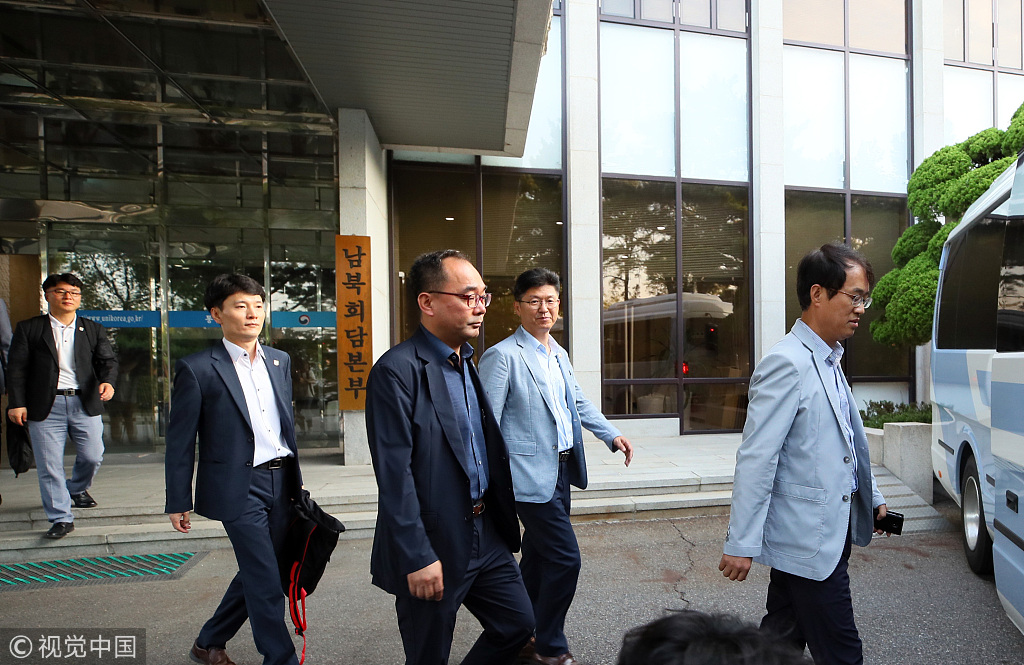 当地时间2018年8月15日,韩国首尔,朝韩离散家属团聚活动即将举行,韩国先遣队前往朝鲜金刚山检查活动准备情况。据韩联社14日报道,韩国统一部官员当天表示,韩国先遣队将于明日(15日)前往金刚山,确认团聚场所和活动场所的安排情况以及移动路线等详细内容。先遣队由政府人员等18人构成,团聚活动结束后返韩。