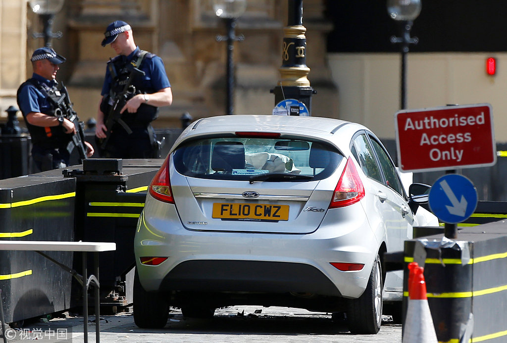 男子驾车冲撞英国议会大厦外安全护栏 致多人受伤