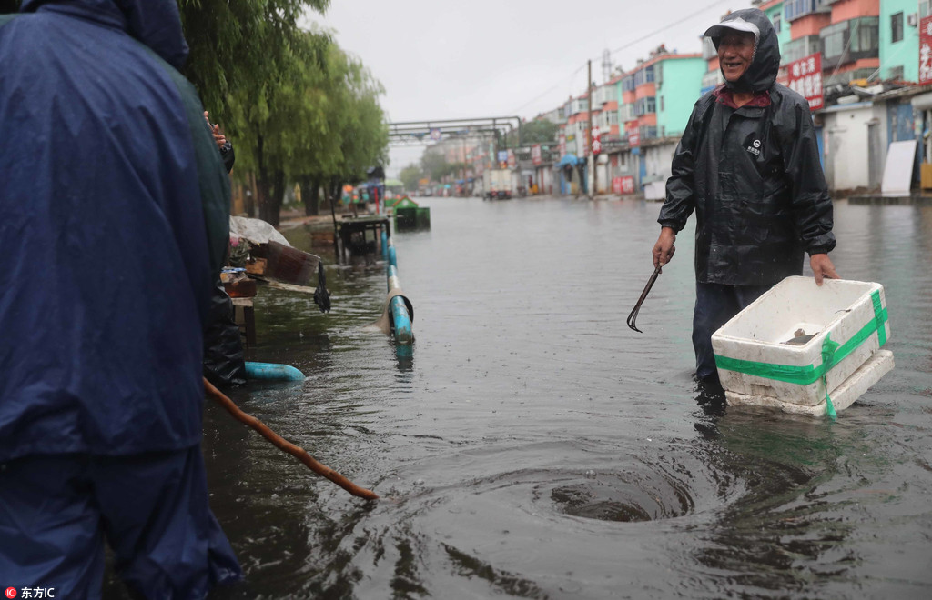 董万华看到积水下排后展露笑颜。