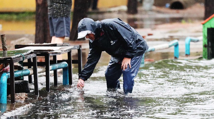 今年68岁的董万华是河北省秦皇岛市海港区河东街道工人北里社区的一名老党员。8月14日,连夜的大雨造成辖区井篦堵塞,董万华老人冒雨从早上5点多清理下水井上的树叶和垃圾,防止下水井被堵死,影响雨水排泄。(图片来源:东方IC)