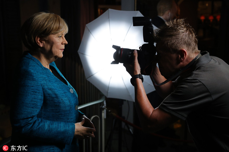 当地时间2018年8月14日,德国汉堡,汉堡蜡像馆展出德国总理默克尔的新蜡像。