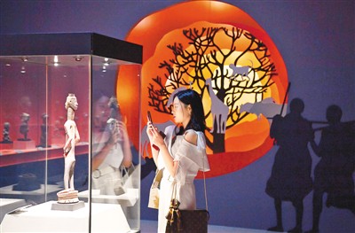 6月7日,媒体记者在重庆中国三峡博物馆“走进非洲——中非珍品雕像艺术展”上参观、拍摄。此次展览于6月8日正式对公众免费开放,将持续至9月9日。 新华社记者 王全超摄