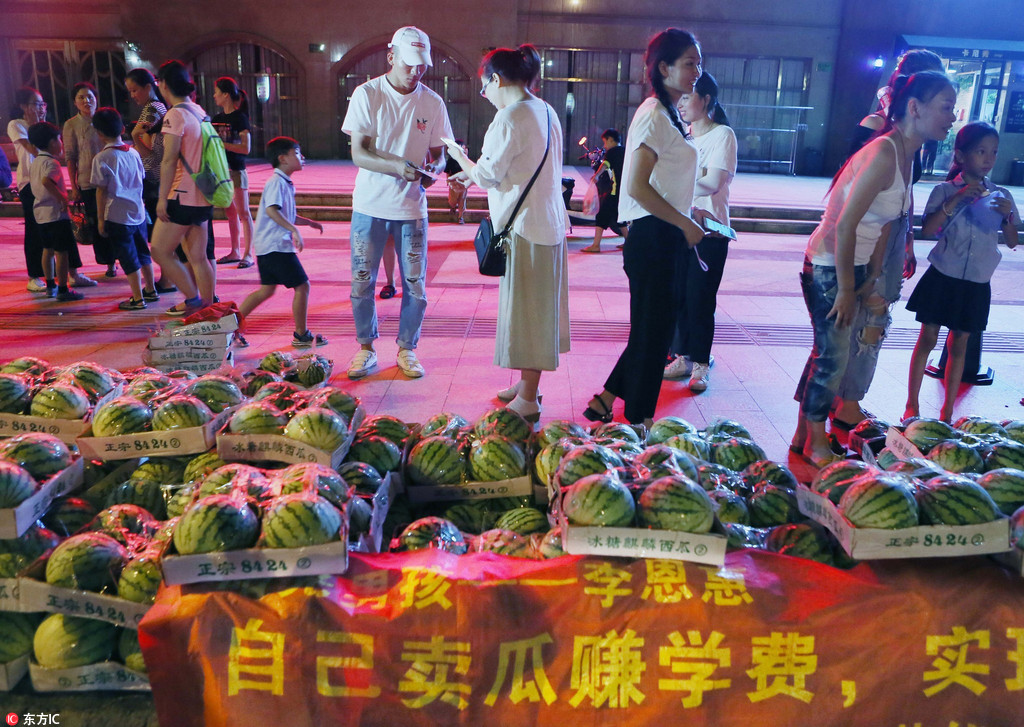 浙江男孩婉拒捐款 卖7万斤西瓜攒学费