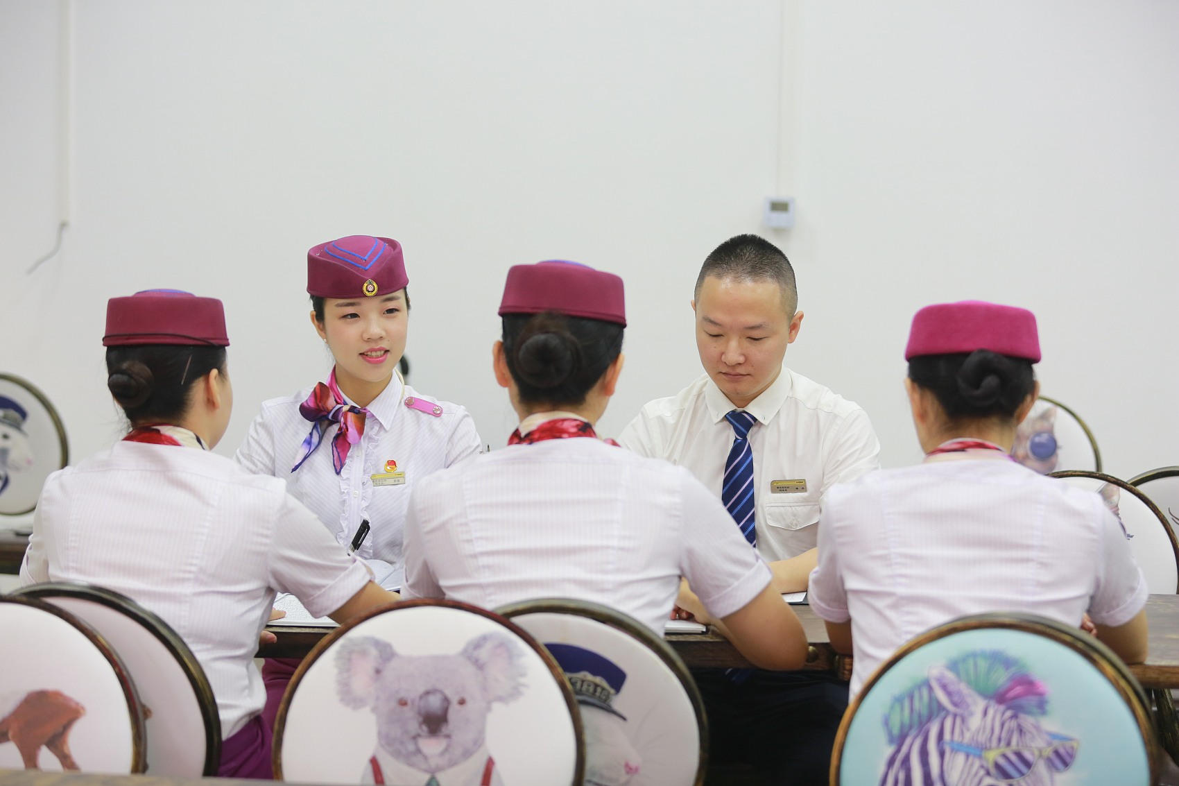 这些“高铁夫妻”,最长的“老夫老妻”结婚刚好两年,最短的新婚夫妻结婚不到一个月。图为潘庆和黄敏一起在学习室进行出乘前的班组学习。