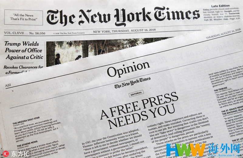 特朗普上台以来,他与媒体之间的“战争”成为世界罕见的奇观。《纽约时报》的社论称:“批评媒体低估或过度炒作新闻甚至弄错事情,是完全必要的。
