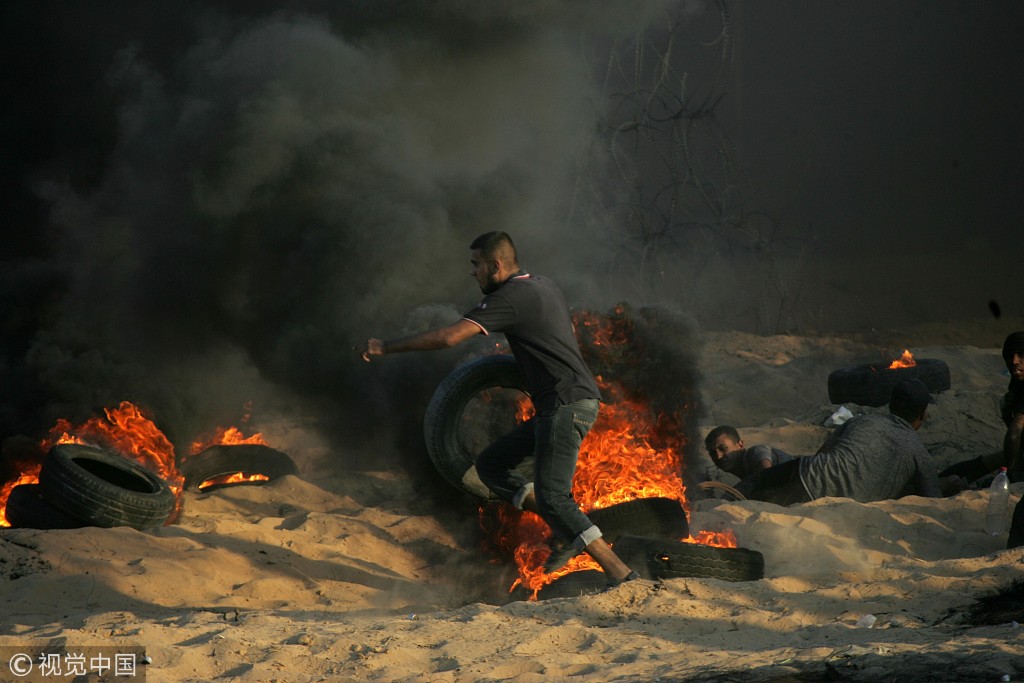 当地时间2018年8月17日,加沙,数千名巴勒斯坦人在加沙地带边境举行抗议活动时与以色列士兵发生冲突,两名巴勒斯坦人在冲突中被以军士兵开枪打死。此外,冲突还造成270名巴勒斯坦人受伤,其中包括19名未成年人。