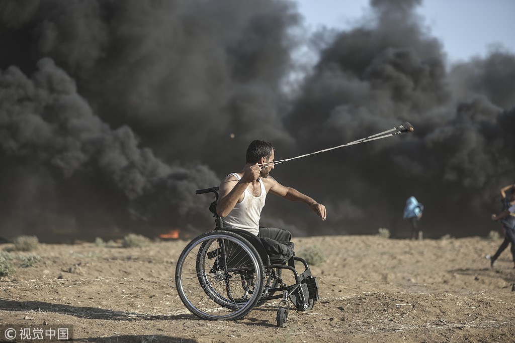 当地时间2018年8月17日,加沙,数千名巴勒斯坦人在加沙地带边境举行抗议活动时与以色列士兵发生冲突,两名巴勒斯坦人在冲突中被以军士兵开枪打死。此外,冲突还造成270名巴勒斯坦人受伤,其中包括19名未成年人。