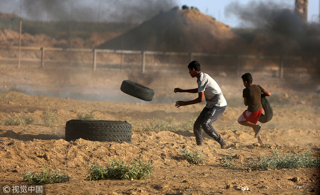当地时间2018年8月17日,加沙,数千名巴勒斯坦人在加沙地带边境举行抗议活动时与以色列士兵发生冲突,两名巴勒斯坦人在冲突中被以军士兵开枪打死。此外,冲突还造成270名巴勒斯坦人受伤,其中包括19名未成年人。
