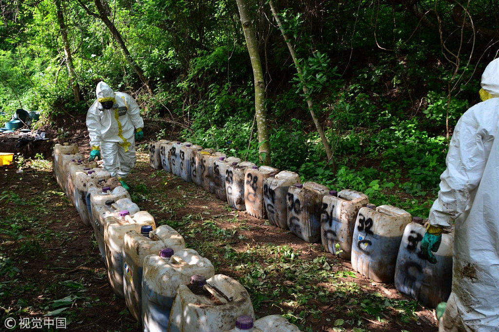 当地时间2018年8月17日,墨西哥Alcoyonqui,一个秘密毒品加工实验室被发现,墨西哥海军缴获了50吨病毒。