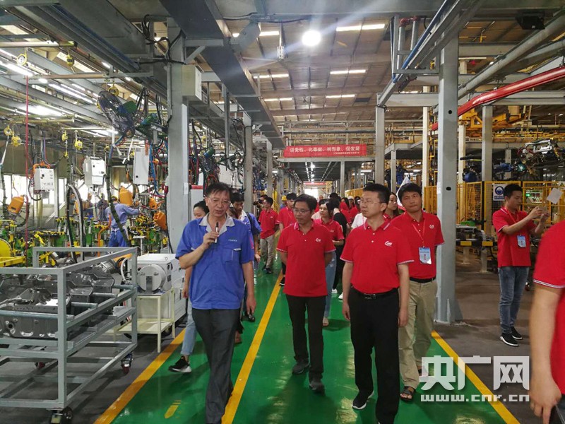 记者来到总装车间内,焊装机器正不间断的工作着。(央广网记者 高寒露 摄)