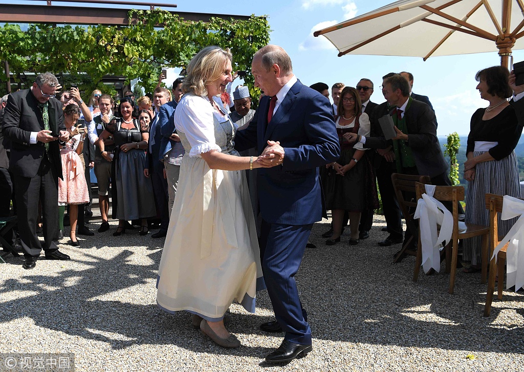 奥地利女外长婚礼举行 普京到场庆贺并与新娘共舞
