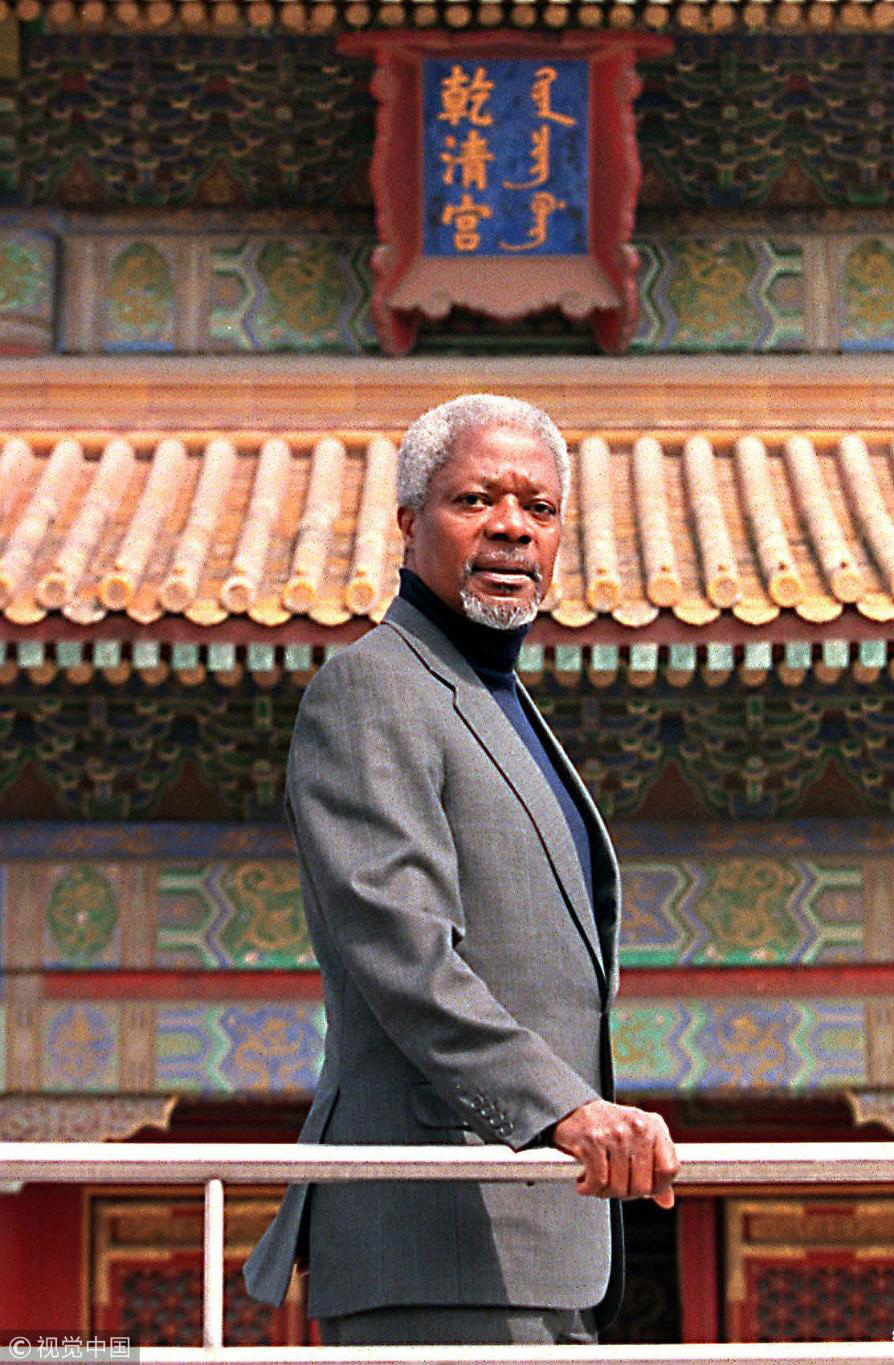 1998年4月1日,北京,联合国秘书长安南参观故宫。