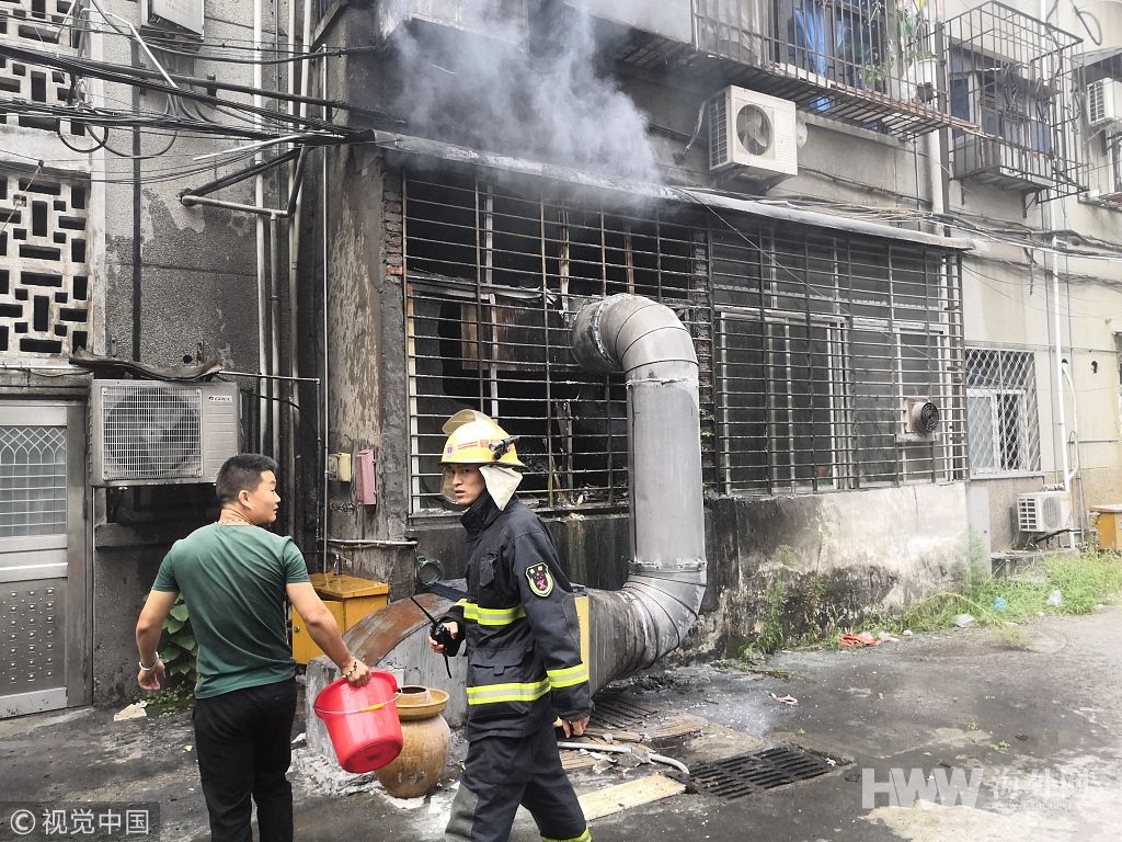 2018年8月17日,湖北襄阳消防员宋俊洋在调休期间准备接女友去吃饭,突然听见外面有人大喊:“着火了,着火了!”原来是旁边一饭店厨房发生火灾,宋俊洋见状拨打完119报警电话后,不顾危险,拿上灭火器就冲向失火饭店。灭火器用完了,改为用水泼、用脚踩的方式灭火……由于处置及时,现场明火被及时扑灭。