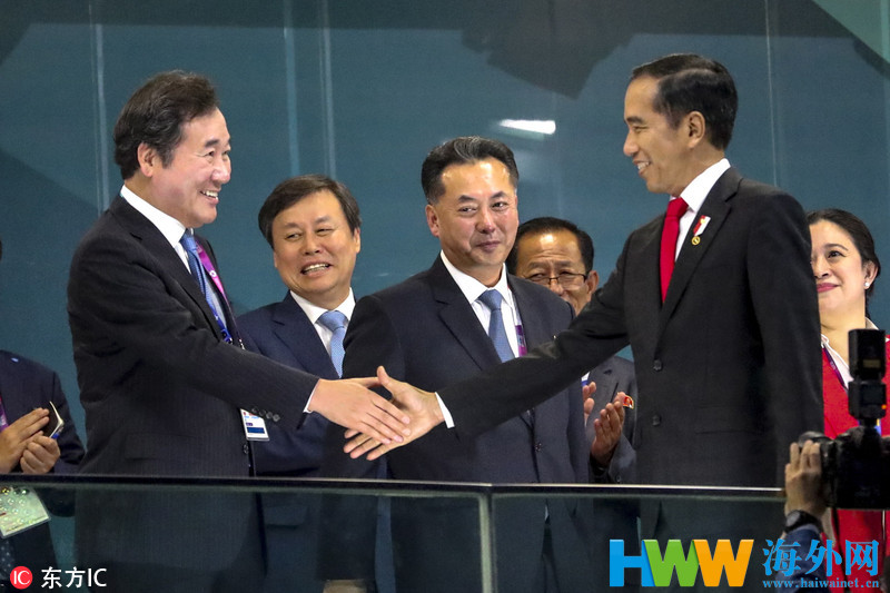 当地时间2018年8月18日,印度尼西亚雅加达,2018年雅加达亚运会开幕式。印尼总统佐科-维多多同多国领导人出席。