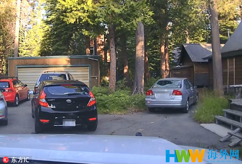 美棕熊开门“劫车”被困 警方击碎窗户助其逃生