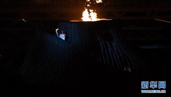 8月18日,最后一棒火炬手王莲香在点火仪式上。当日,第18届亚运会开幕式在印度尼西亚雅加达举行。新华社记者王毓国摄