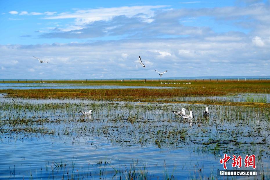 青海湖北岸呈现“鱼鸟天堂” 每年92种候鸟迁徙停留