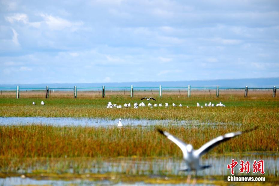 青海湖北岸呈现“鱼鸟天堂” 每年92种候鸟迁徙停留