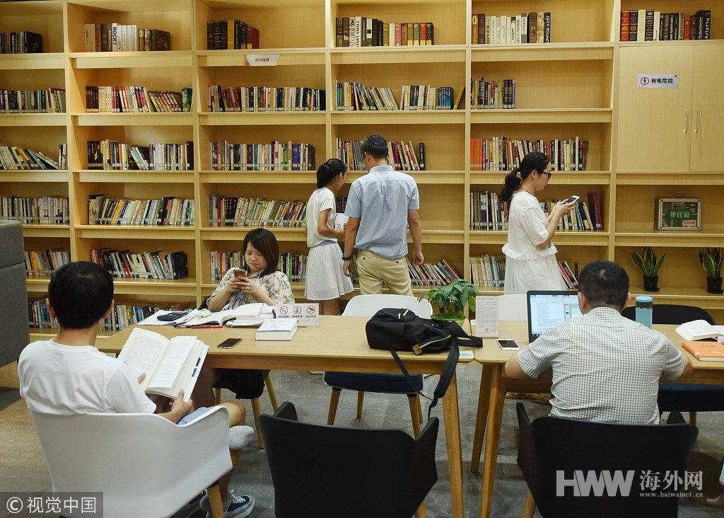 图为读者在西湖书房里阅读图书。