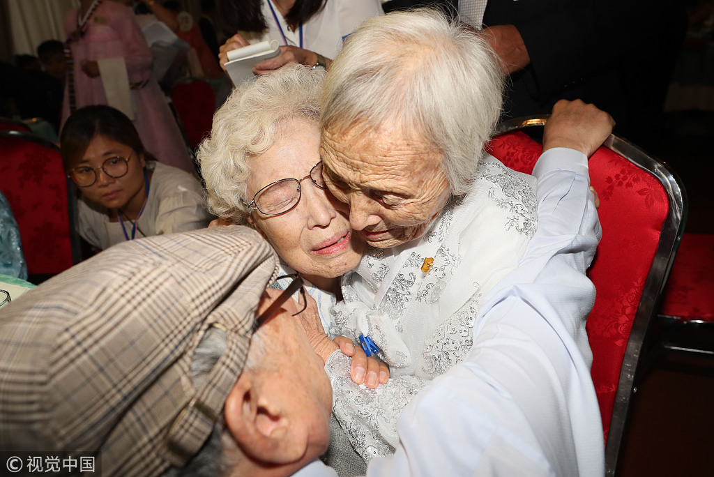 当地时间2018年8月20日,朝鲜金刚山,第21次韩朝离散家属团聚活动首场见面会举行。参加第一轮韩朝离散家属团聚活动的89名韩方家属20日吃过午餐后,探亲团于当天下午3时(北京时间下午2时)在金刚山酒店与185名朝方亲人会面。