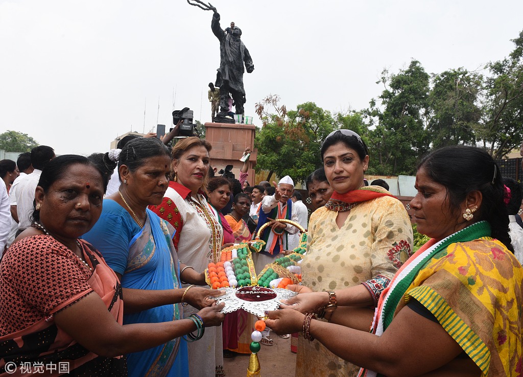 印国会纪念前总理诞辰 甘地雕像洗"牛奶浴"
