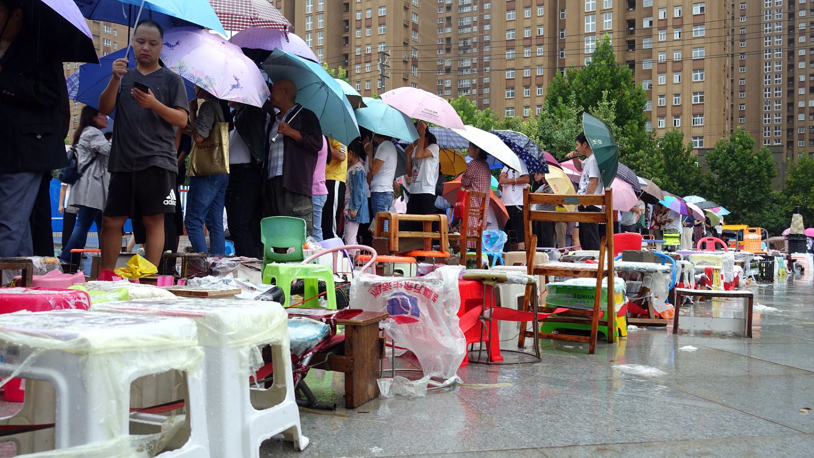 小学入学报名 家长"串联"凳子冒雨连夜排队