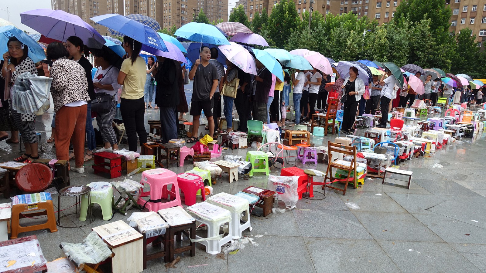 小学入学报名 家长"串联"凳子冒雨连夜排队