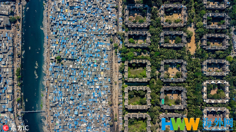 航拍多国“贫富线” 天堂地狱仅一墙之隔