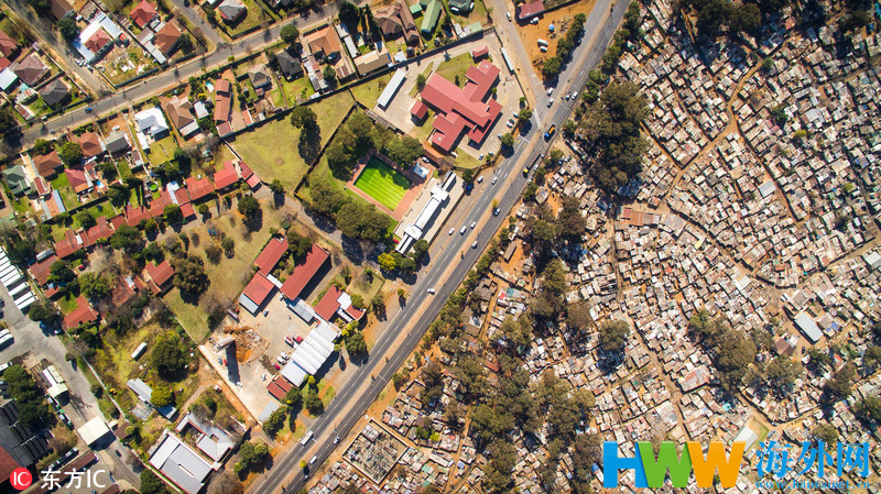 这组图片由37岁摄影师Johnny Miller拍摄,他游走世界各地,向人们揭露了南非、肯尼亚、墨西哥、印度以及坦桑尼亚等国贫富差距,富人区与贫民区仅一条街之隔,却有着天壤之别,令人惊骇。