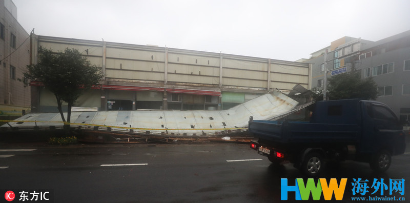 台风"苏力"登陆韩国济州岛 狂风暴雨街头一片狼藉