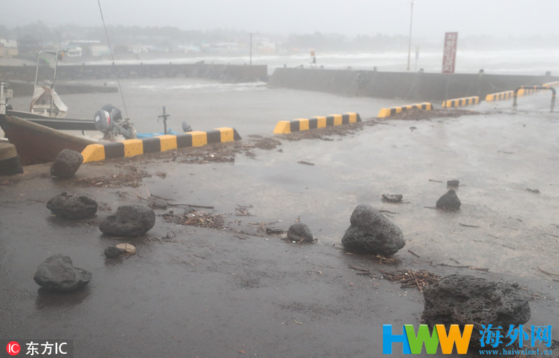 台风"苏力"登陆韩国济州岛 狂风暴雨街头一片狼藉