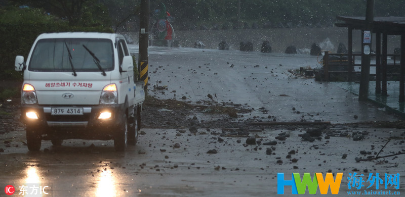 台风"苏力"登陆韩国济州岛 狂风暴雨街头一片狼藉