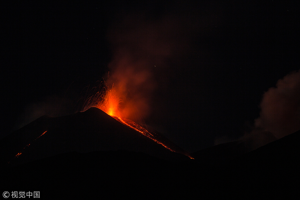 当地时间2018年8月23日,意大利卡塔尼亚,埃特纳火山发生新的喷发。