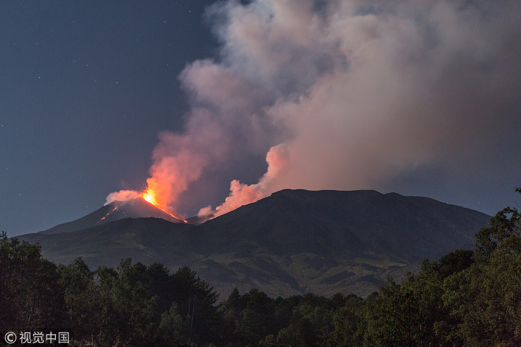 当地时间2018年8月23日,意大利卡塔尼亚,埃特纳火山发生新的喷发。